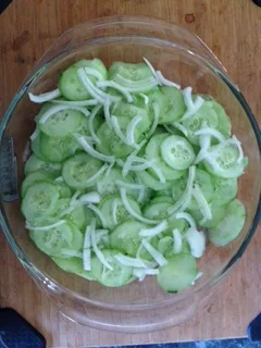For a variation, you may add thin sliced sweet onions and marinate with the cucumbers.