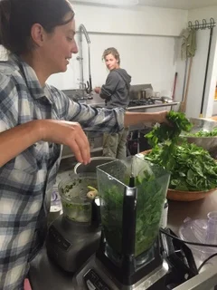 The beauty of pesto is that you can make it out of anything. Crew member Aimee made a delicious basil and chickweed pesto earlier this Spring. I like to mix in 50% herbs with 50% leafy greens for a vitamin-filled flavor boost to an endless variety of meals.
