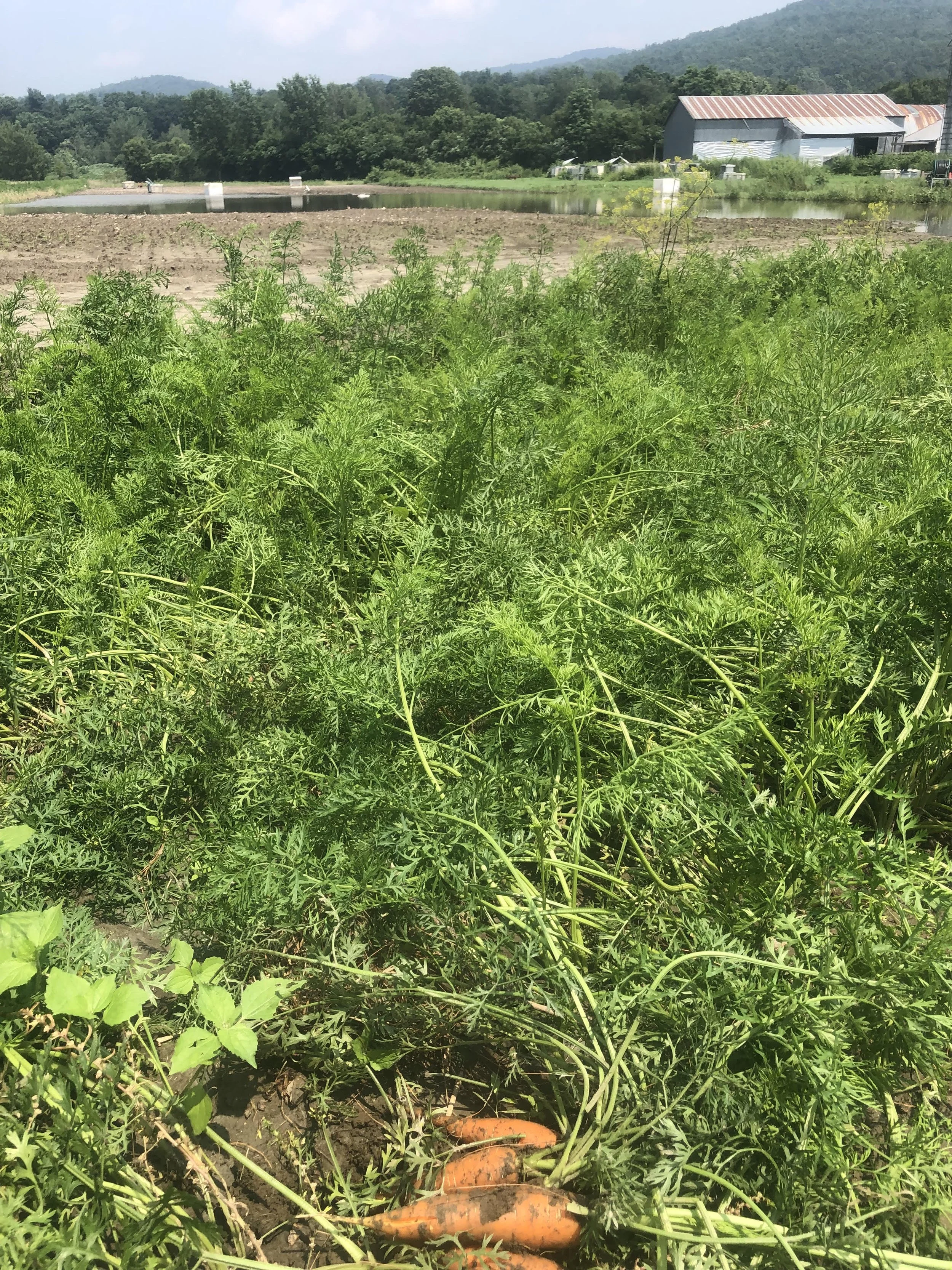 Summer carrots ready to harvest, but we will till them back into the soil without harvesting due to food safety requirements.